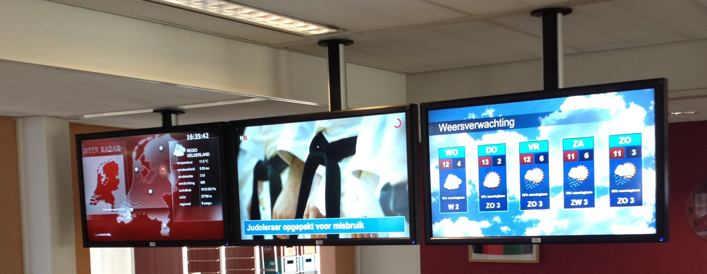 Wij beschikken over de expertise en middelen om de beeldschermen op een juiste plaats op te hangen, samen met u kiezen we een geschikte plaats voor ophanging. Hierdoor vergroot u de kans om uw gewenste doelen te bereiken. We maken gebruikt van professionele beugels om de monitoren aan op te hangen.